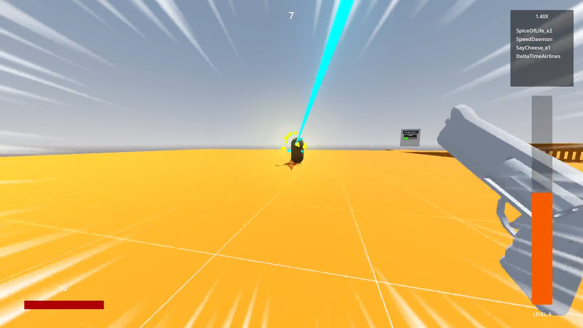 First weapon is The Cursor. Like it says on the tin, you can use it to interact with UI. Simple hitscan revolver. Right clicking will grapple onto enemies.